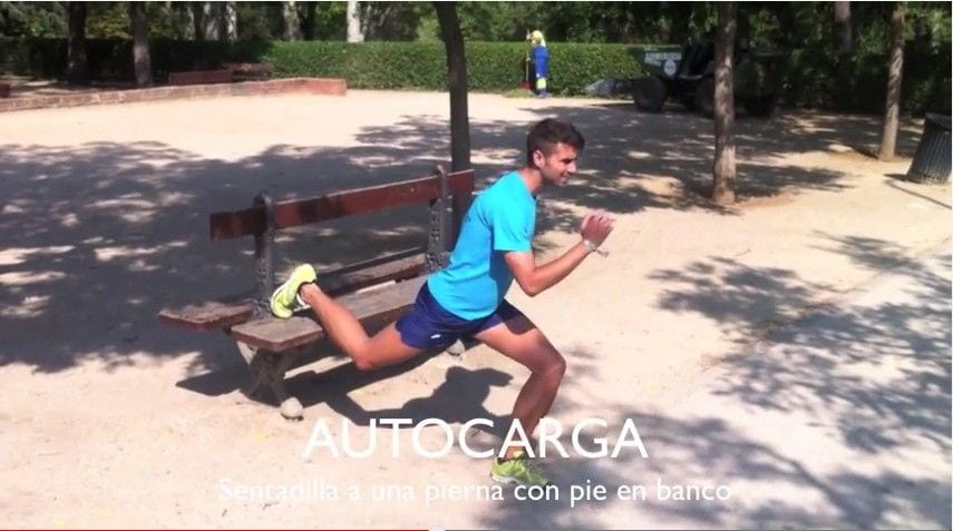 5.- SENTADILLA A UNA PIERNA CON UN PIE EN BANCO