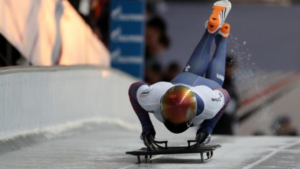 El skeleton es un deporte extremo en el que los competidores se deslizan por un tobogán de hielo. Deben hacerlo en el menor tiempo posible y el piloto debe colocarse acostado sobre el trineo boca abajo, de tal modo que la cabeza quede delante. Los competidores llegan a coger 130km/h.