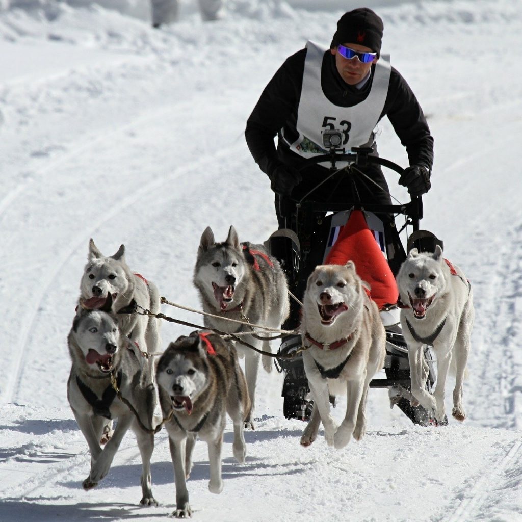 El trineo o Mushing , es un deporte en el cuál se maneja un vehículo con cuchillas o esquís, tirado por perros sobre una superficie nevada para su deslizamiento.