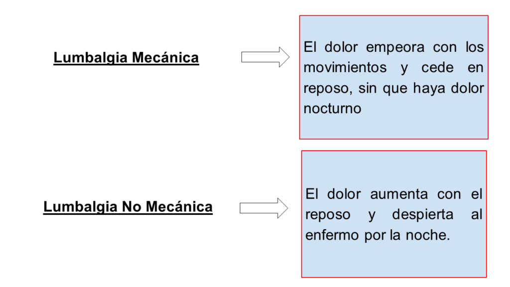 • Algunas de las causas de las lumbalgias no mecánicas: Espondilitis, aneurismas y otras causas inflamatorias.