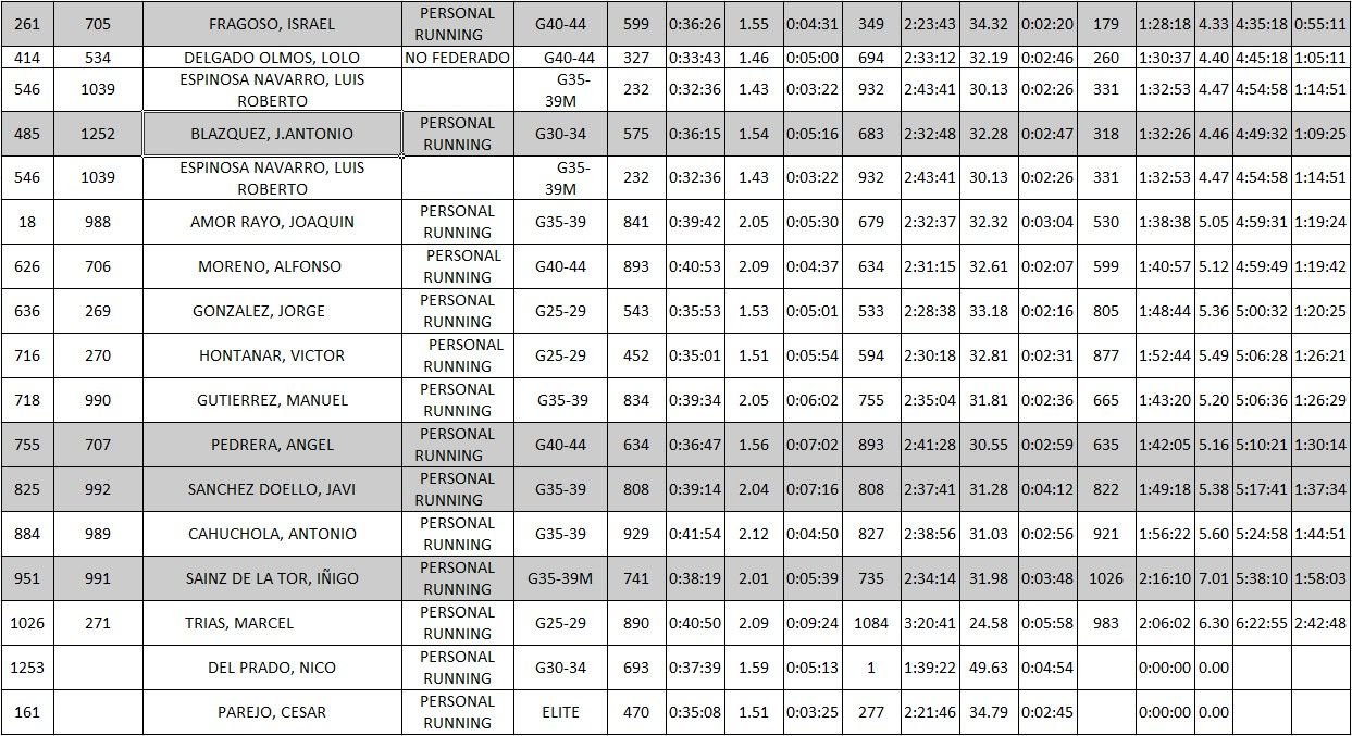 Aquí os dejamos vuestros puestos, tiempos, parciales, y fotos de todos vosotros.